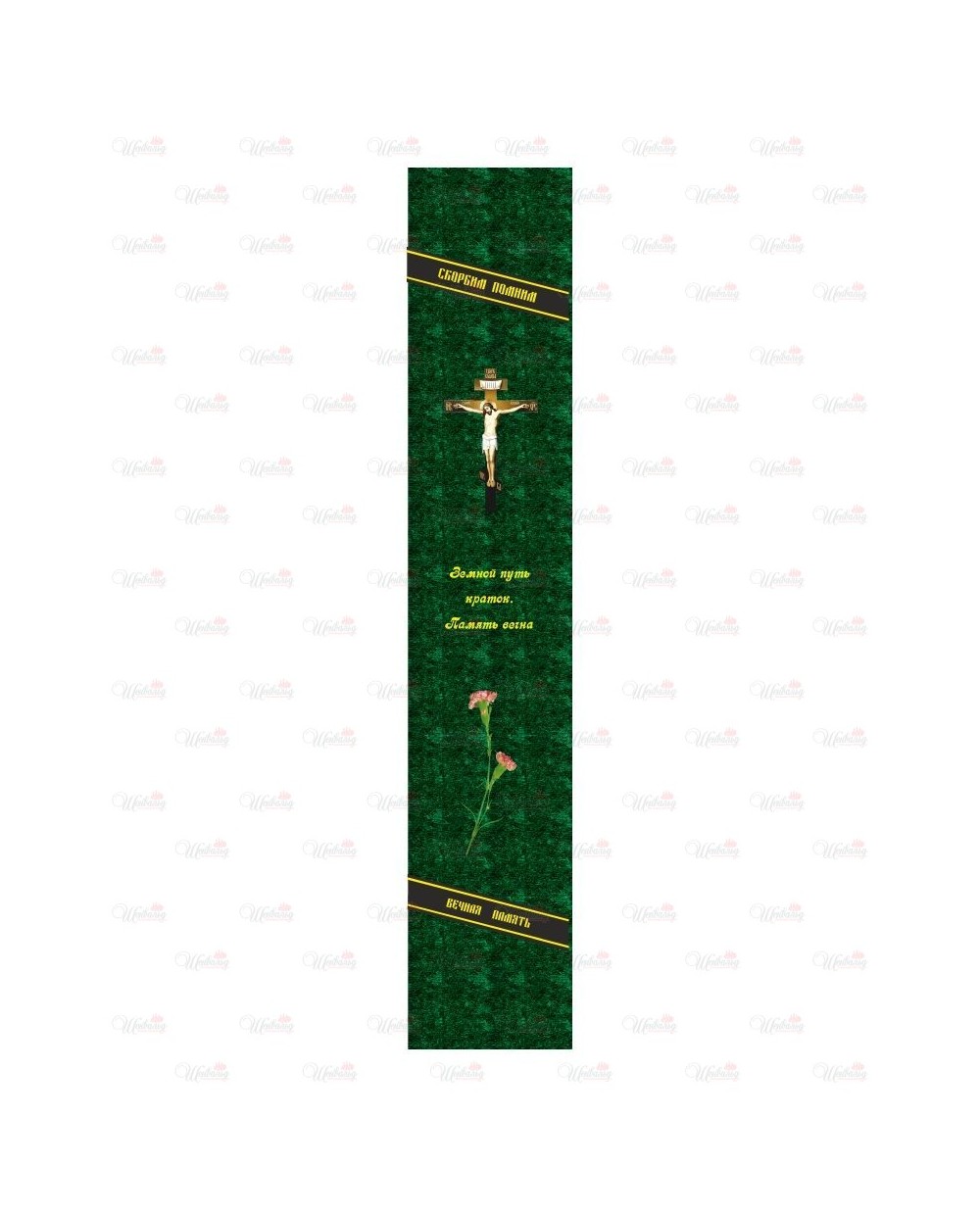 Столешница с фотопечатью "модель Вечная память с распятием" зеленого цвета изготовлена на современном оборудовании с использованием фирменных красителей и баннерной ткани. Изделие обладает высокой устойчивостью к атмосферным осадкам, перепадам температур и механическим повреждениям.