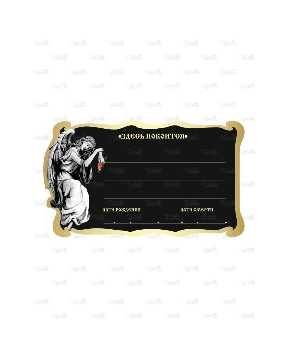Табличка фигурная акриловая с фотопечатью модель "Скорбь" черная зеркальная изготовлена из высококачественного акрила. Нанесенное изображение обладает высокой устойчивостью к выгоранию и стойкостью к атмосферным осадкам.