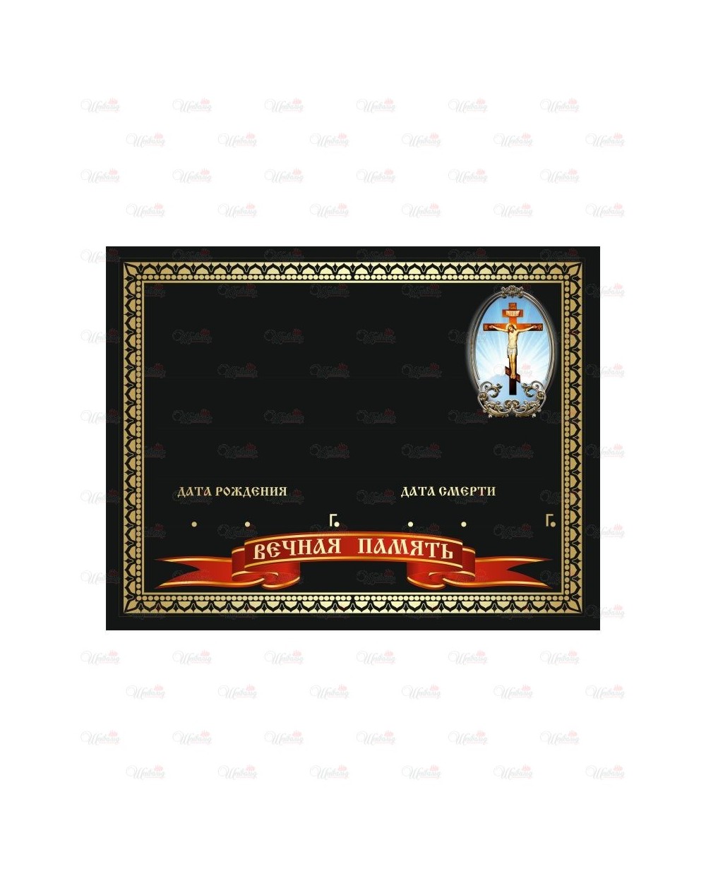 Табличка металлическая с фотопечатью модель "Распятие + Вечная память" зеркальная черная