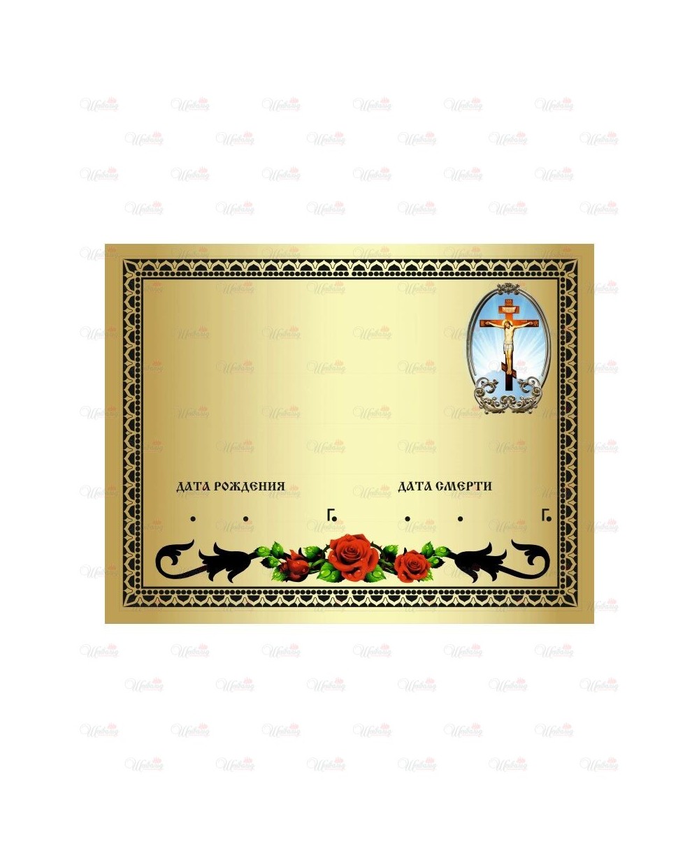 Табличка металлическая с фотопечатью модель "Распятие + Роза" зеркальная золотая полноцветная изготовлена из высококачественной оцинкованной стали толщиной 0,35мм. Нанесенное изображение обладает высокой устойчивостью к выгоранию и стойкостью к атмосферным осадкам.