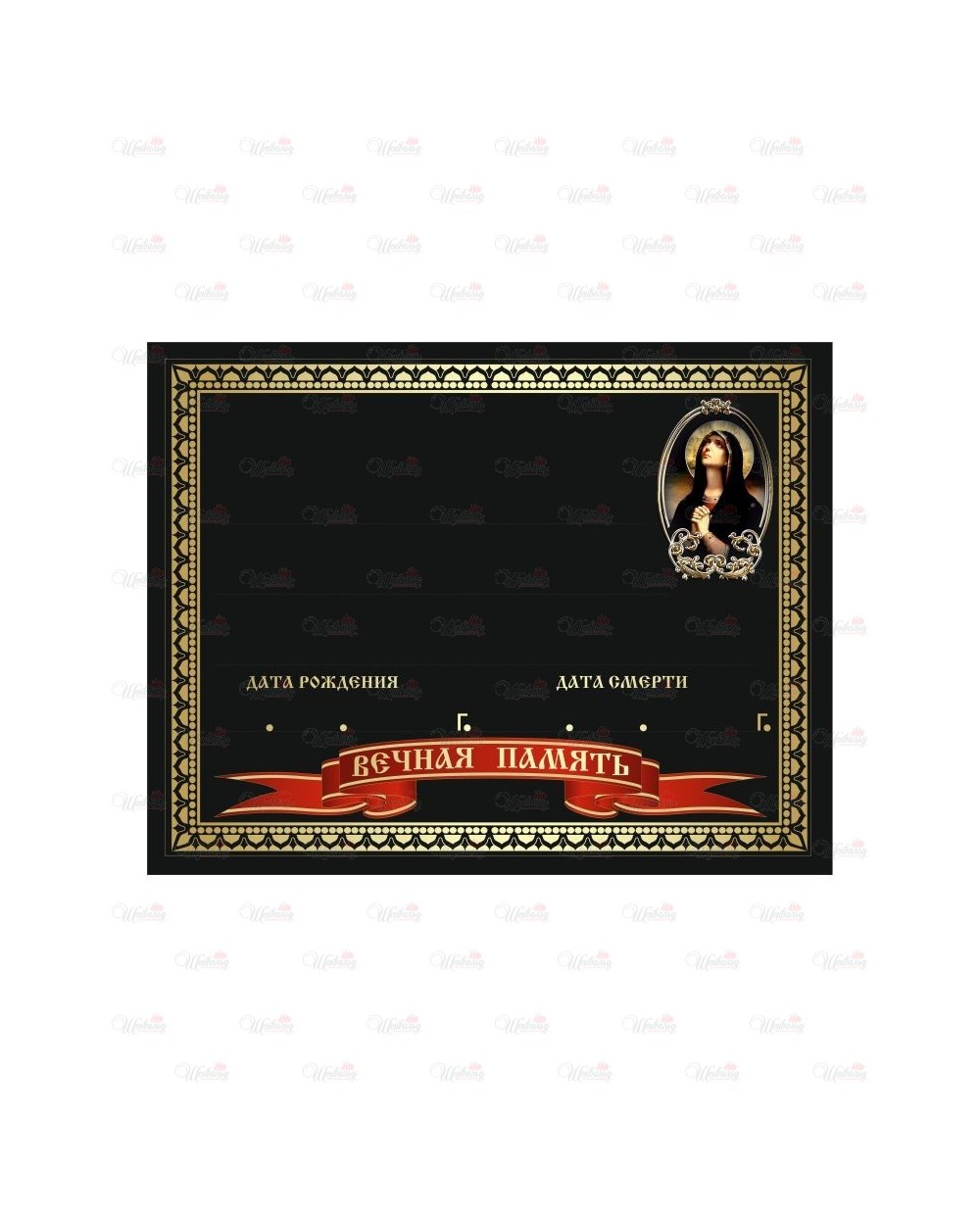 Табличка металлическая с фотопечатью модель "Богородица + Вечная память" зеркальная черная полноцветная изготовлена из высококачественной оцинкованной стали толщиной 0,35мм. Нанесенное изображение обладает высокой устойчивостью к выгоранию и стойкостью к атмосферным осадкам.