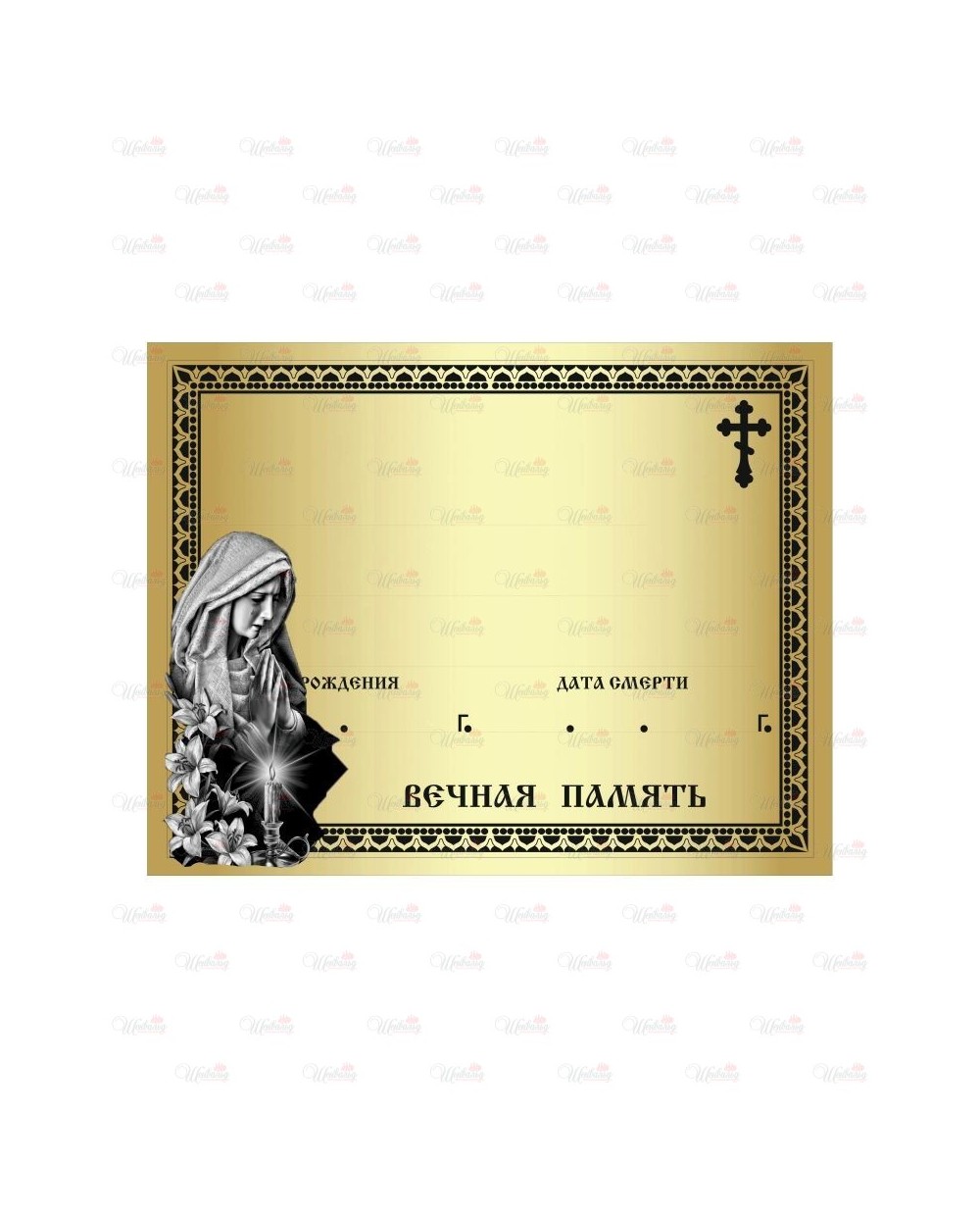 Табличка металлическая с фотопечатью модель "Слеза" зеркальная золотая желтого цвета изготовлена из высококачественной оцинкованной стали толщиной 0,35мм. Нанесенное изображение обладает высокой устойчивостью к выгоранию и стойкостью к атмосферным осадкам.